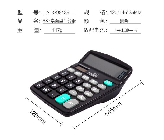 晨光文具837太陽能計算器商務(wù)型辦公用會計專用科學(xué)商用學(xué)生考試大屏大按鍵計算機(jī)大號小號便攜雙電源