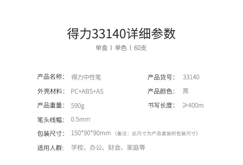 得力文具33140 中性筆學(xué)生考試量販式黑筆水筆碳素筆0.5mm 60支裝